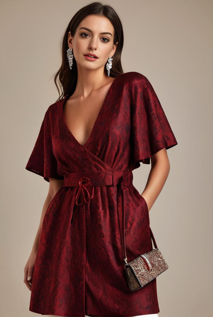 This stunning plus size floor length formal evening gown is the perfect choice for weddings and special occasions. The shimmering fabric and double deep V neckline exude elegance, while the ruffled sleeves add a touch of romance.